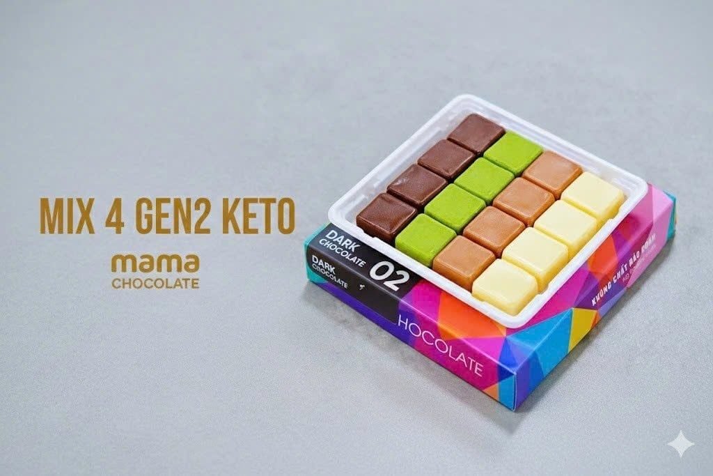 Điểm nổi bật của dòng MIX 4 vị này là sử dụng đường keto thay thế 25% đường thông thường, giúp giảm đáng kể calo mà vẫn giữ độ ngọt dịu dàng, không gắt. Vẫn đầy đủ vị béo ngậy, thơm ngon nhưng "ăn đã đời – không lo béo"! Lý tưởng cho người theo chế độ low-carb, keto, ăn kiêng lành mạnh, hoặc ai muốn tận hưởng socola tươi kiểu Nhật/Ý mỗi ngày mà không áy náy.